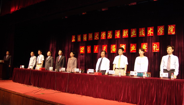 2012年6月1日上午,高职学院2012届毕业典礼在国歌声中隆重举行。参加毕业典礼的有校党委书记虞丽娟、副校长程裕东、教务处处长张宗恩、学生处处长李兴华和高职学院院长成长生、学院常务副院长闻人勇建、院党总支书记林高、学院副院长金晔、付昱、张云。
