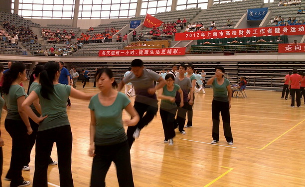 为提高高校财务工作者身体素质和健康水平,构建和谐校园,推进阳光财务的公共财政理念,6月9日, 2012年度“阳光财务、阳光体育——上海市高校财务工作者健身运动会”在复旦大学正大体育馆举行,为期1天。本届运动会由上海市教委财务处、上海教育会计学会主办、复旦大学财务处承办。我校共有19名财务处老师参加了此次运动会,其中包括第九套广播体操、跳长绳两个集体大项,足球射门、排球发球、飞镖、乒乓球、羽毛球5个单项的比赛。在全体老师的齐心协力和奋力拼搏下,赛出了成绩,赛出了风格,圆满完成了所有比赛项目,通过比赛,不仅锻炼了老师们的身体素质,更提高了团队凝聚力。