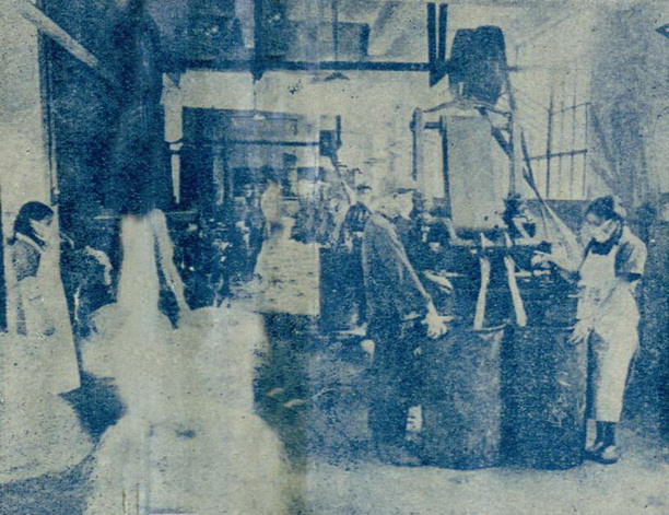渔轮出海前先要装置渔网将一片片网衣缝合起来