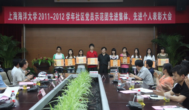 组织部部长汪之和宣读了《上海海洋大学关于表彰2011-2012学年先进党员示范队、示范标兵、示范积极份子和优秀指导教师的决定》(沪海洋委组〔2012〕5号文件)。经学生申报、示范团辅导员推荐、示范团评议、公示、审批,决定授予第一示范队等9个示范队为先进示范队称号,张德亮等76名示范队队员为示范标兵称号,任小杰等131名示范队队员为示范积极分子称号,丁蓉蓉等4名教师为优秀指导老师。