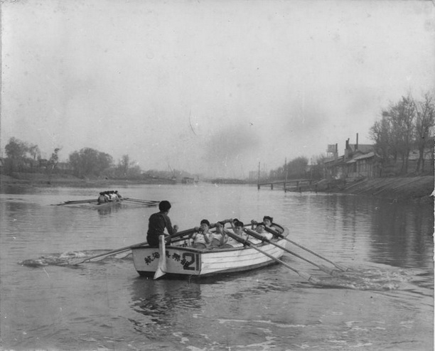 1958年11月,我校划船队正式成立,男子划船队在黄浦江内江训练