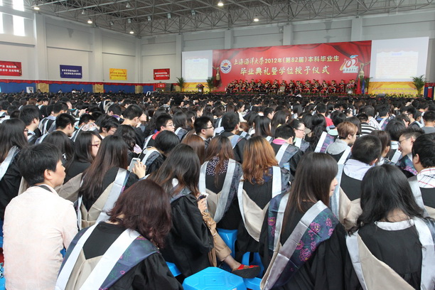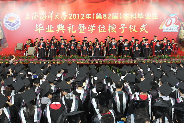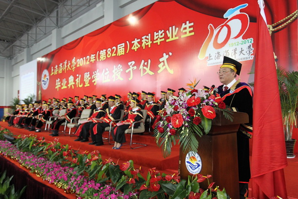 上午10时整,2012年(第82届)本科毕业生毕业典礼暨学位授予仪式在雄壮的国歌声中拉开帷幕。校领导虞丽娟、潘迎捷、黄晞建、程裕东、顾乃达、吴建农、李家乐以及各学院院长、校学位委员会委员、校学术委员会委员、各职能部门负责人、部分教师和家长代表出席毕业典礼,杰出校友代表东海渔政局张秋华副局长作为嘉宾出席典礼。典礼由副校长程裕东主持。