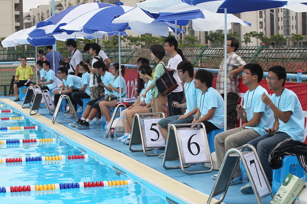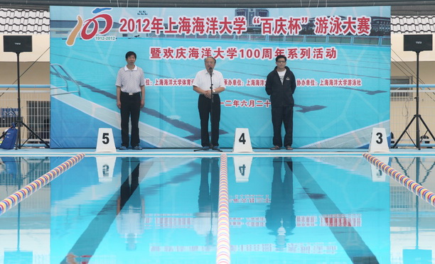 6月21日,2012年上海海洋大学“百庆杯”游泳大赛暨欢庆海洋大学100周年系列活动在我校室外游泳池隆重举行。校长潘迎捷出席开幕式并致辞,校体育运动委员会主任、副校长程裕东主持开幕式。