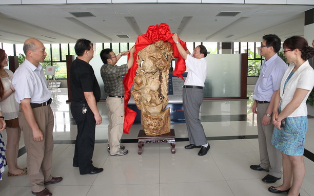正值我校喜迎百年校庆之际,6月28日东海海洋工程勘察设计研究院向我校赠送“鱼水情”根雕仪式在行政楼大厅举行。校长潘迎捷、副校长程裕东、校庆办常务副主任、宣传部部长江卫平、信息学院院长黄冬梅、校庆办成员以及双方代表出席了捐赠仪式。苏诚院长与潘迎捷校长共同为根雕揭幕。