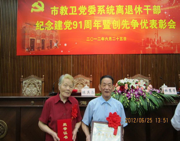 近日,上海市教卫党委系统离退休干部纪念建党91周年暨创先争优表彰会在教育会堂隆重召开,市教卫党委副书记杜慧芳、组织人事处处长周国明出席了表彰会。