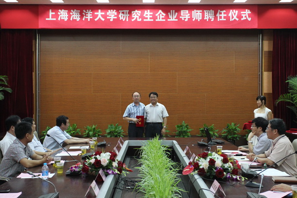 为进一步推进我校承担的教育部专业学位研究生教育综合改革试点工作, 7月4日上午在图文中心102会议室,我校举行了全日制专业学位研究生企业指导教师聘任仪式。自中国水产总公司、上海水产(集团)总公司、上海金优远洋渔业有限公司、上海开创远洋渔业有限公司、上海蒂尔远洋渔业有限公司、上海华利船舶工程有限公司、深圳联成远洋渔业有限公司、深圳华南渔业有限公司等8家远洋渔业企业的20名企业高级工程师或高级行政管理人员受聘为我校专业学位研究生企业导师,聘期为五年。