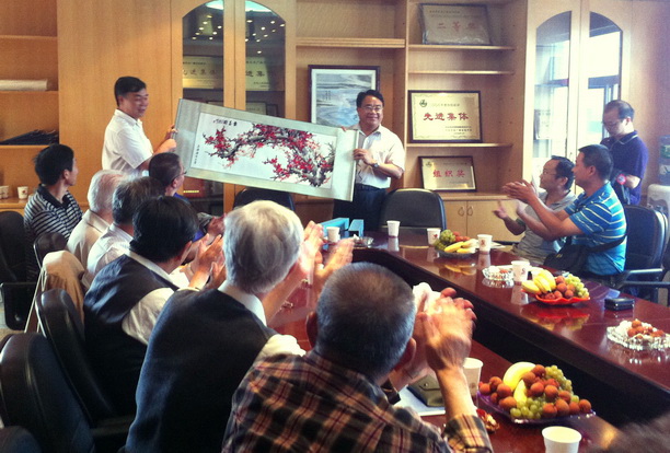 黄硕琳副校长对校友的热情接待表示感谢,并介绍了随行的教务处处长张宗恩教授和成教学院院长成长生教授。随后介绍了我校的基本情况和百年校庆的筹备情况。校友们听了校长报告之后,很是振奋。校友们纷纷对母校领导到云南来看望校友表示感谢,并介绍了云南水产资源和发展情况,希望母校给云南校友科技、人才等方面的支持和帮助。最后邱会长表示,此次交流收获很大,大家借助校友会平台,校友之间多加强交流和合作,多加强和学校联系和合作,和学校共同发展。校友们表态:母校的百年诞辰,一定出一份力。会上,黄硕琳副校长代表学校向云南校友会赠送一幅梅花报春图,这代表母校对校友向梅花一样坚韧不拔,不屈不挠,奋勇当先,自强不息。会后,黄硕琳副校长和校友共同合影留念。