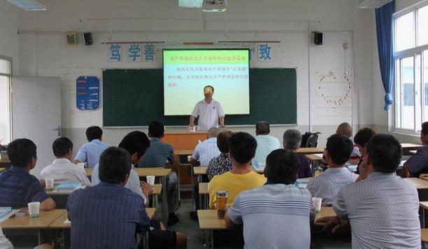 马旭洲副教授在上海外冈镇成人学校通过《河蟹池塘生态养殖新技术》讲座用通俗易懂的语言向32名养殖技术人员深入浅出地了传授了净水渔业的新理念;不仅介绍了河蟹生态养殖的基础知识,为准备从事河蟹生态养殖的养殖户提供技术储备,而且详细讲解了河蟹生态养殖的重点和难点,为正从事河蟹生态养殖的养殖户阐明了关键技术;总结了上海地区从事河蟹养殖具有得天独厚的优势:标准化的池塘、选育的良种、营养平衡的配合饲料等,以及上海市中华绒螯蟹产业技术体系的技术支撑;展望了养殖户从事净水渔业的前景:不仅可以获得较高的经济效益,而且净化了水环境。