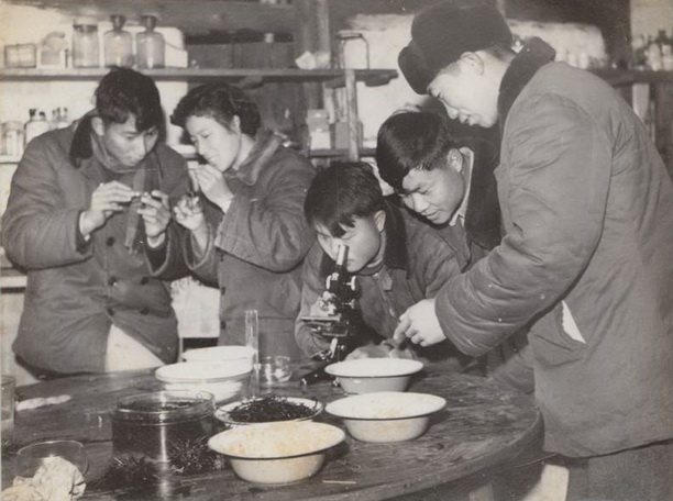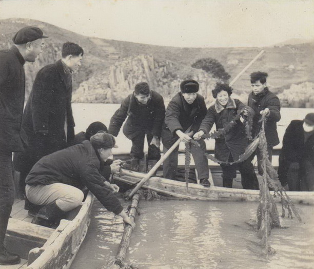 1958—1965年其间,学校组织广大教师尤其是青年教师下渔村、上渔船,参加渔业生产劳动,广泛接触渔民,培养吃苦耐劳、虚心向渔民学习、理论联系实际的精神,提高了教学、科研服务生产实际的能力。其中,水产养殖系王素娟等在浙江舟山海区开展的海带栽培试验。