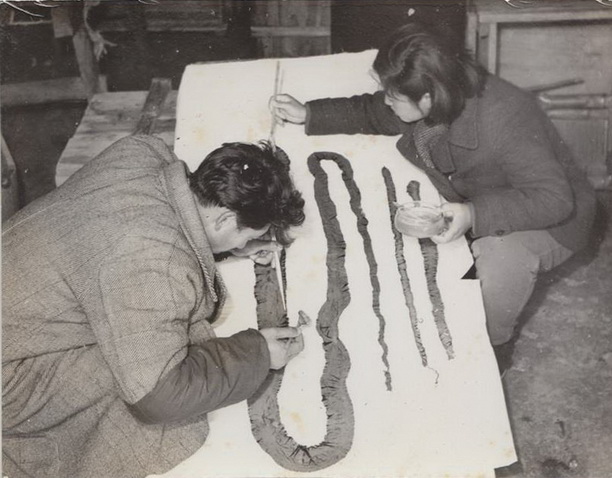 60届海水养殖专业师生1958年-1959年在舟山虾寺制作海带夹苗绳