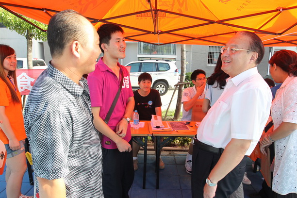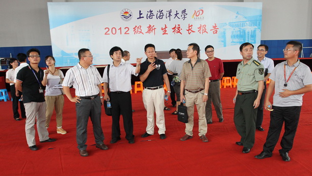8月25日,校长潘迎捷,校党委副书记、副校长黄晞建,在学生处处长李兴华、后勤管理处处长俞渊、保卫处处长姜新耀、后勤服务中心书记戴永金、紫泰物业公司驻校管理处经理李建中等相关职能部门负责人陪同下,实地查看了校园主干道、新生宿舍、各学院新生报到点、第一食堂等各迎新点,对新生接站、交通管理、住宿安排、保卫安全、入学教育等各相关工作进行了检查,以确保迎新工作顺利展开。