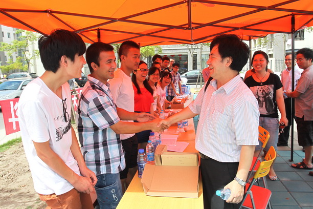 黄晞建副书记与2012级的新生志愿者亲切交谈