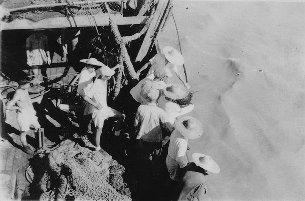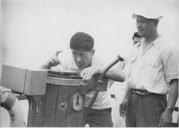 1952年,为满足学生教学实习的需要,华东水产管理局从上海水产公司调拨270总吨的“水产号”渔船给学校作实习渔船,供海洋渔业及航海专业学生实习。后因“水产号”船龄过长报废,水产部又拨专款建造两艘185总吨250马力实习渔船“发奋号”和“图强号”。以下图片均为捕55级学生在校“水产号”渔轮上的实习。