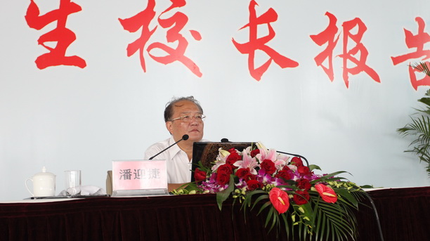 8月27日上午,2012级新生校长报告会在室内网球馆隆重举行,报告同时在图文信息中心104进行了现场直播,我校3200余名新生认真聆听了潘迎捷校长的精彩报告,与校长近距离接触。报告会由学生处处长李兴华主持。