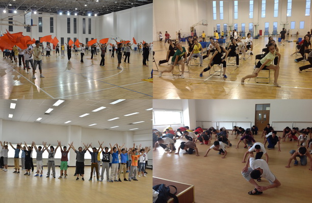 从8月27日至8月31日两百余名老团员到校集训,经过宣传招新,一共有270余名大一新生加入到艺术团。9月1日开始,550余名百年校庆演职人员每天上午9:00开始就准时来到各自的排练房,进行每天10个小时密集而紧张的训练。艺术团的新老团员们在一起为着同一个目标——海大百年校庆而努力着。