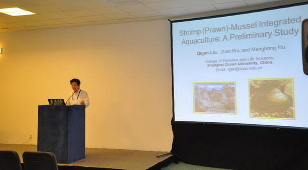在本届大会上,我校教师共做口头报告5场,提交墙报3份。其中刘其根教授做了题为“Shrimp (Prawn)-Mussel Integrated Aquaculture: A Preliminary Study”的报告,赵金良教授以“Cloning and Spatiotemporal Expression of Pepsinogens and Gastric Proton Pump Genes From Mandarin Fish Siniperca Chuatsi During Early Ontogeny”为题作了发言,刘利平副教授的报告题为“Impacts of Integrated Cage Culture System on Water Quality in Deep Water Lakes”,刘华楠副教授作的报告题为“An Analysis on Competitiveness for Shrimp Products in China Based on Sustainable Development Perspective”,张文博的报告题为“Chinese Farmed Seafood Production and International Trade: Recent Trends and Future Prospects”。我校教师的精彩报告,引起了与会专家们的广泛兴趣。有关本届大会的部分会议论文摘要和口头报告内容将在世界水产养殖学会网站(www.was.org)的Conference Presentation栏目中公布,请感兴趣的师生关注。