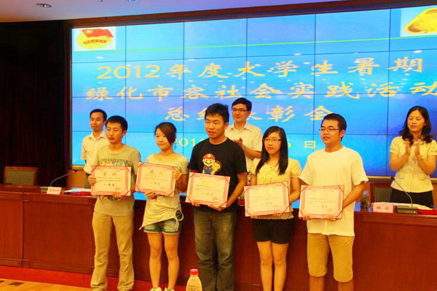 2012年9月6日,2012年度大学生暑期绿化市容社会实践活动总结表彰会在上海市绿化市容局隆重召开。团市委学校部部长陈立俊、市绿化市容局处长周华杰及市绿化市容宣教中心主任姚婴出席了此次总结表彰会。交通大学、同济大学及我校等上海市十数所高校的各实践团队成员均参加了此次总结表彰大会。