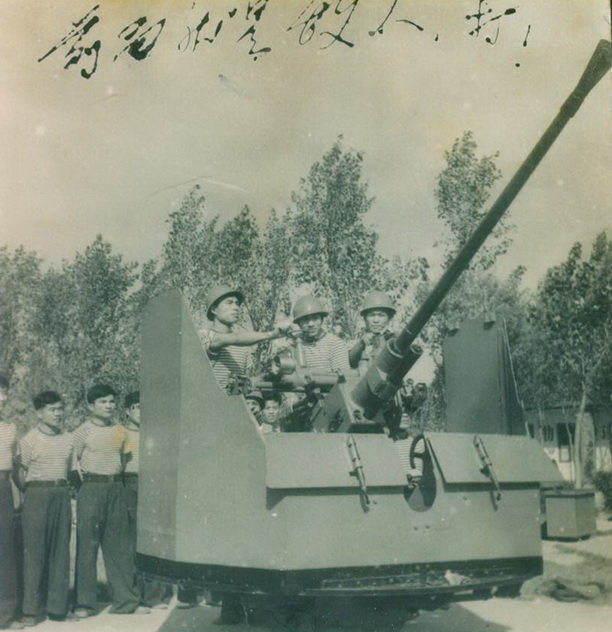 1964年8月学生在海军323登陆舰暑期当兵锻炼一个月,图为学生操炮练习
