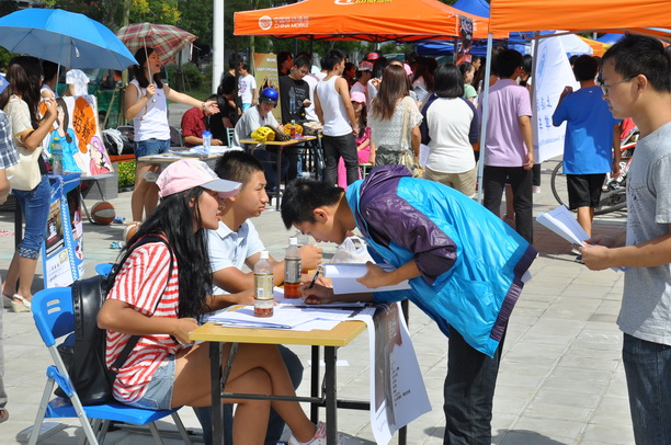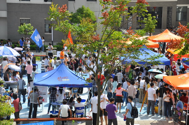 9月25日午时,由校社团联合会组织、百事可乐赞助的,“为渴望出征,为百年校庆喝彩”——百团招新大战在海星广场如期打响。此次招新共有96个社团摆摊宣传,目标集中于大一新生各社团“花样百出”,让初秋的海星广场犹如“盛夏”般火热。