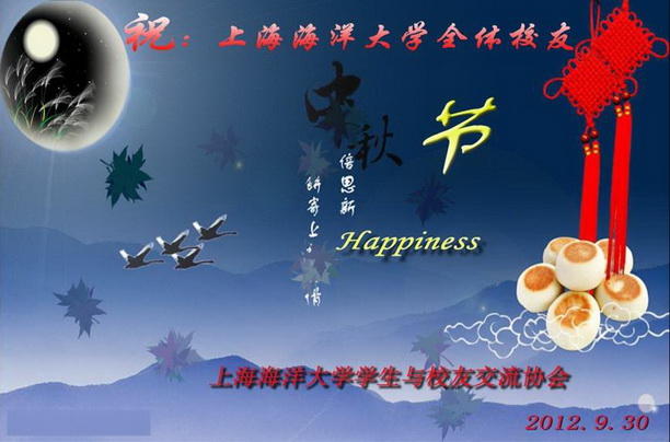 金秋时节,情意连绵,恰逢百年校庆之时,值此月圆之际,上海海洋大学学生与校友交流协会给全体校友送去中秋的祝福,感谢大家对我协会的支持和鼓励,祝大家“月”来越幸福、“月”来越健康、“月”来越快乐!