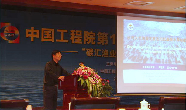 2010年,何培民教授在北京参加“中国工程研究院论坛——碳汇渔业与渔业低碳技术”并做大会报告