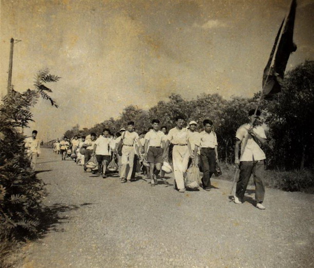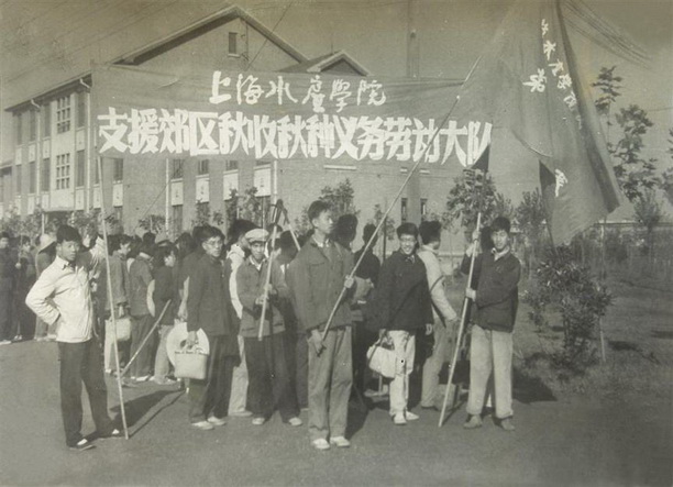 前进中的学生支援郊区秋收秋种义务劳动队