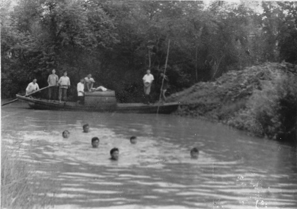 1958年6月南翔养鱼场同学在工作之余进行游泳锻炼