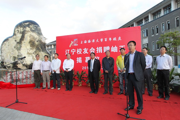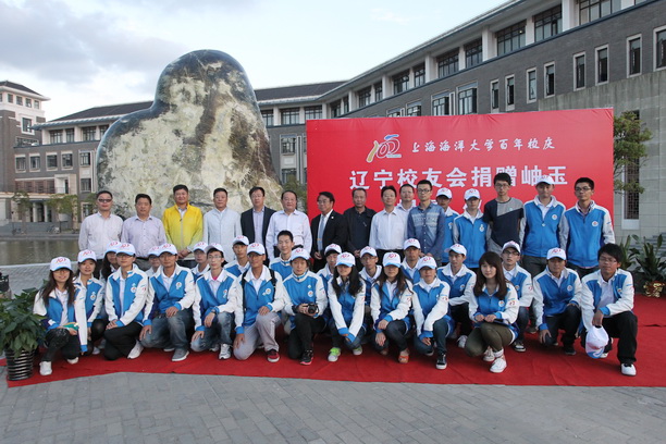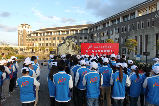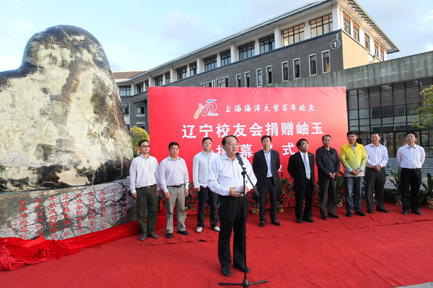 2012年10月12日下午,在上海海洋大学第一教学楼前广场举行了辽宁校友会捐赠岫玉揭幕仪式。出席揭幕仪式的校领导有上海海洋大学校长潘迎捷、副校长黄硕琳、副校长封金章,校友代表有1986届海洋捕捞专业校友谢伟超(斐济永幸渔业有限公司董事长),1988届水产品加工工艺专业校友高飞(丹东元一海产精制品有限公司董事长),1988届海洋渔业资源专业校友徐辉(大连典范投资担保有限公司董事长),1994届海洋渔业专业校友张忠辉(大连禧荣国际有限公司董事长),以及来自校办、宣传部、后勤管理处、财务处、校庆办公室和各学院的师生代表60余人。揭幕仪式由副校长封金章主持。