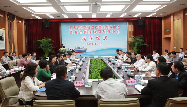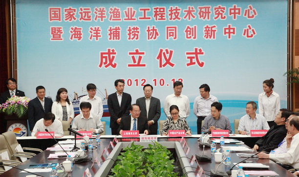 2012年10月13日,国家远洋渔业工程技术研究中心、海洋捕捞协同创新中心暨-上海海洋大学远洋渔业学院成立揭牌仪式在我校图文信息中心102会议室隆重举行。