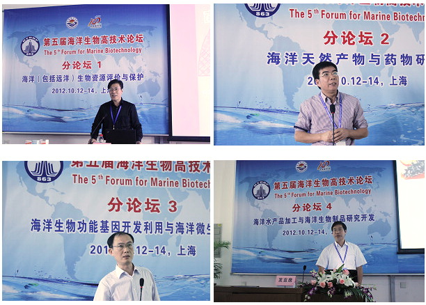 由国家高技术研究发展计划(863计划)海洋技术领域办公室和中国21世纪议程管理中心联合主办、上海海洋大学承办、中国生物化学与分子生物学学会海洋生物化学与分子生物学分会和中国微生物学会海洋微生物学专业委员会协办的“第五届海洋生物高技术论坛”于2012年10月12-14日在我校隆重召开,从事海洋生物科学研究的高等院校、科研院所、公司企业的500余名领导、专家、学者、学生以及新闻记者参加了这次大会。
