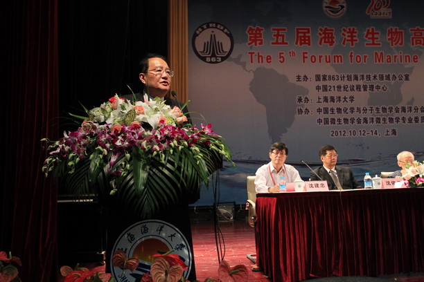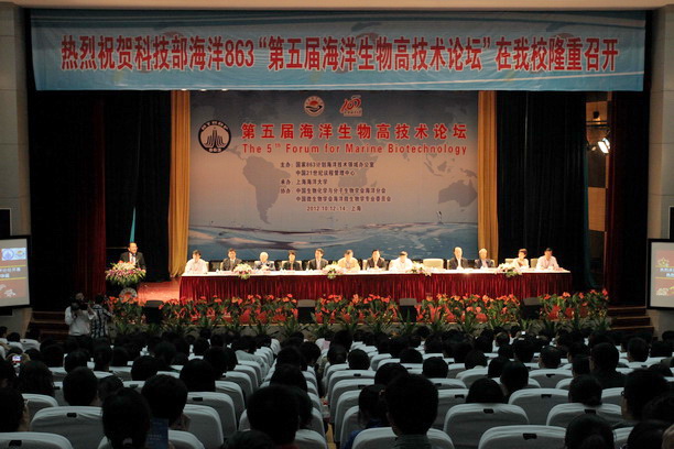 由国家高技术研究发展计划(863计划)海洋技术领域办公室和中国21世纪议程管理中心联合主办、上海海洋大学承办、中国生物化学与分子生物学学会海洋生物化学与分子生物学分会和中国微生物学会海洋微生物学专业委员会协办的“第五届海洋生物高技术论坛”于2012年10月12-14日在我校隆重召开,从事海洋生物科学研究的高等院校、科研院所、公司企业的500余名领导、专家、学者、学生以及新闻记者参加了这次大会。