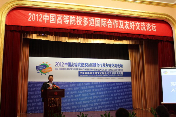 10月20日,2012年中国高等院校多边国际合作及友好交流论坛在北京举行,本次论坛由中国对外友好协会、中国对外友好合作服务中心主办,我校学生处副处长朱克勇老师和辅导员及学生代表应邀参加此次论坛并作专题发言和分享交流。