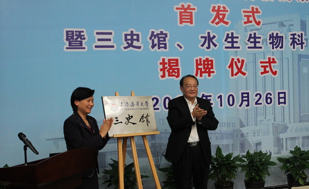 10月26日下午,《上海海洋大学百年志》、《上海海洋大学传统学科、专业与课程史》、《上海海洋大学百年科技成果汇编》首发式暨三史馆、水生生物科技馆揭牌仪式在图文信息中心102室举行。老领导乐美龙、陈坚、赵长春、李道恒、曹德超,校领导虞丽娟、潘迎捷、黄晞建、封金章与老专家,三书编委、主笔,三史馆、水生生物科技馆建馆人员和设计公司总经理约80人出席仪式。仪式由校党委副书记、校志办主任吴嘉敏主持。