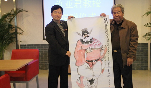 10月30日, 百年校庆来临之际,我校兼职教授、著名人物画家许亚君先生来校赠送上海海洋大学百年校庆《献寿图》。校党委副书记、副校长黄晞建代表学校接收捐赠,并颁发捐赠证书,宣传部江卫平部长、人事处郑卫东处长、学生处朱克勇副处长等参加捐赠仪式。