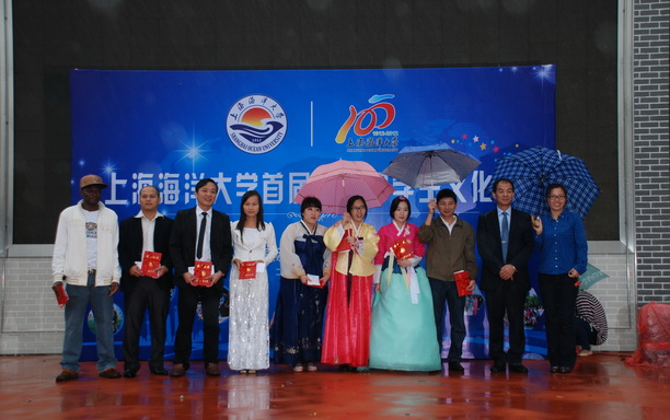 外事处副处长钟俊生在致辞中首先感谢冒雨前来参加活动的师生们,充分肯定了留学生通过文化节等活动促进中外交流、浓厚校园国际氛围的作用。他希望留学生们继续努力,成为各自国家与中国友好交流、共同发展的使者。人文学院党委副书记高晓波为各国留学生代表颁发了百年校庆纪念品。国际文化交流学院副院长李琼宣读外国留学生奖励金颁奖决定。信息学院党委副书记晏萍为获奖者颁发了证书和奖金。