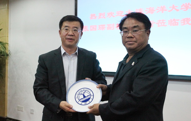 黄硕琳副校长代表学校对张国琛副校长一行的到来表示欢迎,他简要介绍了学校100年的改革与发展历程,希望两所海洋大学能进一步相互学习、合作,共同促进国家海洋事业的发展。张国琛副校长祝贺我校喜迎百年校庆,并赠送贺礼。他特别感谢我校对此次调研之行给予的帮助,希望能够借鉴我校在研究生教育培养方面积累的经验,为大连海洋大学研究生教育的发展提供建设性的思考。