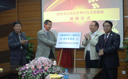 翁立新、李院生、潘迎捷、黄硕琳为中国极地研究中心-上海海洋大学联合实验室“极地海洋适应生物与生态实验室”揭牌