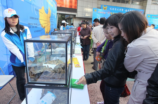 市民观看河蟹展览
