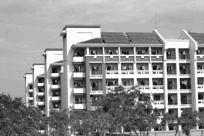 上海海洋大学临港新城校区全部本科生公寓和部分研究生公寓都“头顶”一块块亮灿灿的“板”——太阳能集热器 胡崇仪 摄