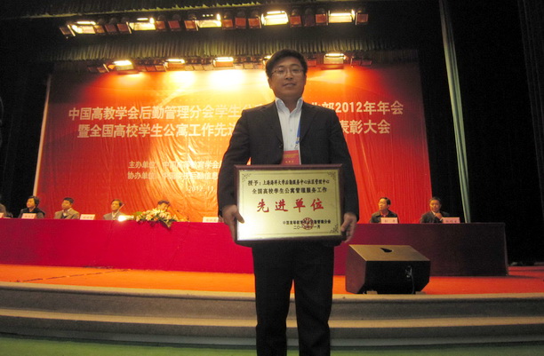 11月24日,由中国高等教育学会后勤管理分会学生公寓管理专业部举办的“2012年年会暨全国高校学生公寓工作先进单位表彰大会”在贵阳举行,教育部发展规划司后勤改革处处长朱宝铜及贵州省教育厅、全国高教学会后勤分会相关领导出席并讲话。经上海市学校后勤协会组织评选并推荐,我校社区管理中心被授予“全国高校学生公寓管理服务先进单位”,任和平同志荣获“全国高校学生公寓管理服务先进个人”。