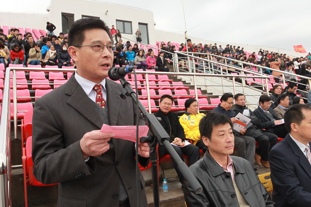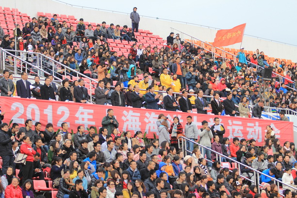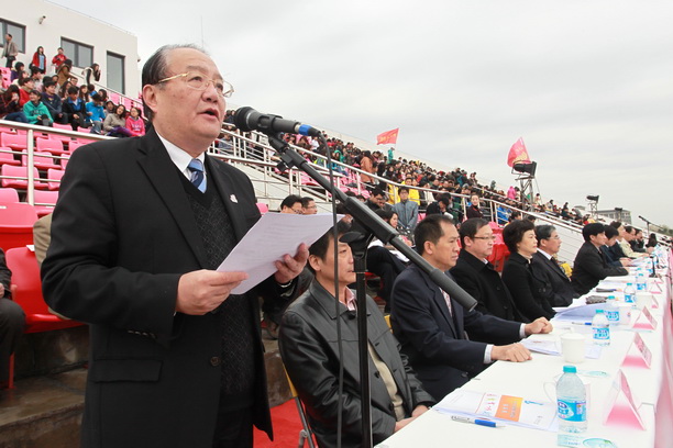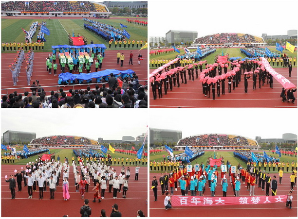 潘迎捷校长在开幕式上致辞。潘校长深情地说,刚刚过去的百年校庆非常成功、非常精彩,百年校庆的圆满举办不仅扩大了我校的影响力,更提高了我校的凝聚力,但是我们海大人要继续发展传统,继往开来,要在新的百年里扬帆起航、再创辉煌。潘校长还说,发展体育是党和国家制定的一项重要方针,是社会文明的标志,是大学生校园生活的真实体现,同时也是展示我校魅力的重要窗口。一直以来,我们海大人秉承勤朴忠实的校训,发展体育运动精神,刚刚活力四射的开幕式表演就是我们海大学子青春活力的最好展示。最后,潘校长向运动会筹办人员表示由衷的感谢,要求运动员赛出风格、赛出水平,呼吁海大人共同努力,为把我校建设成一流高水平特色大学共同奋进,并预祝运动会圆满成功。