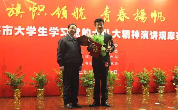 为抒发当代大学生对祖国、对党的热爱,同时为党的“十八大”献礼,20012年11月27日,由上海市教卫工作党委和上海市教委共同主办的“旗帜领航,青春扬帆”上海市大学生学习党的十八大精神演讲观摩赛在上海工程技术大学顺利举行。