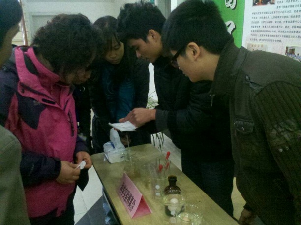 随后的咨询服务现场,我校志愿者带来的脂肪仪、科学实验辨真伪、植物油酸价快检等项目得到了广大农民朋友的积极参与。“科学实验辨真伪”受到一致好评,其中鸡蛋的新鲜程度判别小方法更是成为现场的焦点。