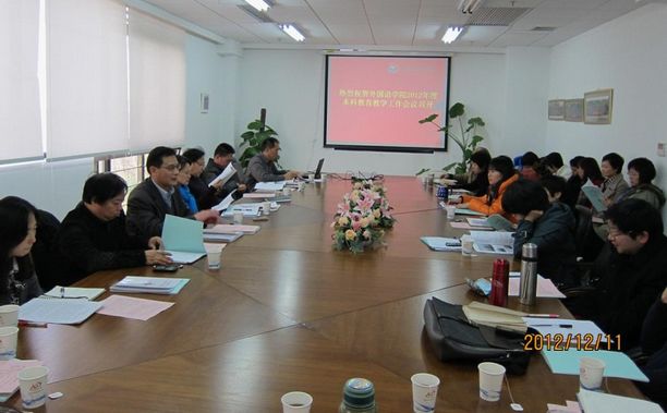 12月11日下午,行政楼406会议室,外国语学院召开主题为“推进学科、专业与课程一体化建设,努力提高我院本科教育教学质量”的2012年度本科教育教学工作会议,全体院领导、基层教学组织负责人、教学工作委员会委员,教学督导、骨干教师代表、部分辅导员和学生信息员代表参加了本次会议。副校长程裕东教授、教务处处长张宗恩、人事处处长郑卫东和学生处副处长朱克勇等职能部门负责人应邀出席了本次会议。会议由外国语学院党委书记兼常务副院长齐亚丽教授主持。