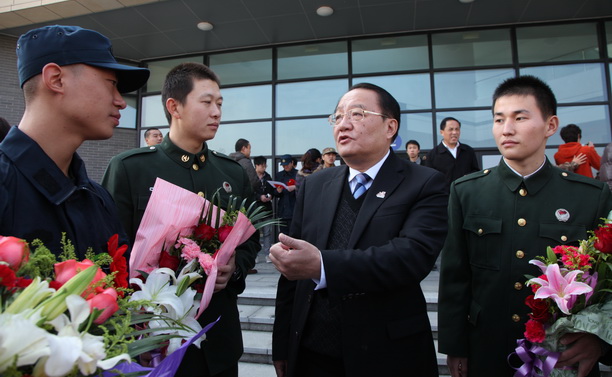 黄晞建副书记为首批新兵送行