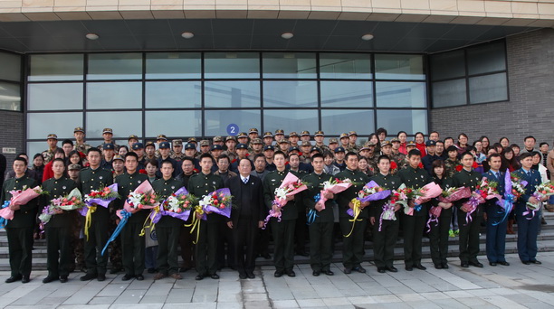与会领导与退伍、入伍大学生合影