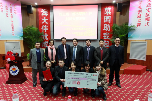 2012年12月18日,上海海洋大学第三届“都市菜园杯”果蔬宅配模式的市场环境分析创新大赛决赛在行政楼137会议室举行。本次大赛由上海光明食品集团五四有限公司和我校联合主办,经济管理学院和上海都市生活企业发展有限公司承办。上海海洋大学潘迎捷校长、上海光明食品集团五四有限公司党委书记、董事长祁瑞芝先生等出席大赛。北大纵横合伙人崔凯先生担任大赛评委会主席,光明食品集团上海五四有限公司总经理沈红然先生、上海都市营销管理有限公司总经理杨学军先生、经济管理学院院长平瑛教授和华威国际合伙人侯文山先生担任大赛评委。