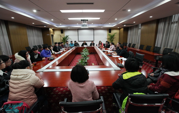 12月27日下午,潘迎捷校长在行政楼104与校通讯社(记者团、摄影协会以及广播台)学生进行交流座谈。