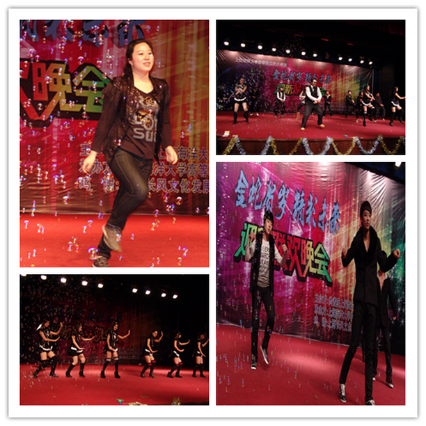 青春岁月似烂漫天花,欢舞贺岁庆美好年华。晚会的第二篇章带走了我们无尽的沉思和感慨,亦带来了无数心灵的闪光,灵魂的升华。由高职学院广播站主演的小品《情感咨询》引领我们踏入第三篇章的殿堂----“欢舞贺岁”,他们将欢笑带上了舞台,带进了我们每个人的心灵。伴随着小品的收尾,高职学院街舞社的同学们用街舞串烧《free style》,将整个晚会的气氛推向了高潮。紧随其后由学院团委副书记胡雯雁老师带来的激情四射的《爵士舞》以及最后学生的傣族舞《韵》更为整个晚会画上了一个圆满的句号。