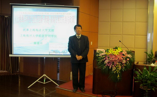 民革上海海洋大学支部主委、我校经济管理学院陈蓝荪教授作了题为“上海海洋科技与经济创新—跨越—高端发展的机制与政策”的报告。强调必须从战略高度认识加强中国海权;上海应创新驱动,转型发展,高端推进上海海洋产业的优化发展,为中国成为海洋强国作出贡献。